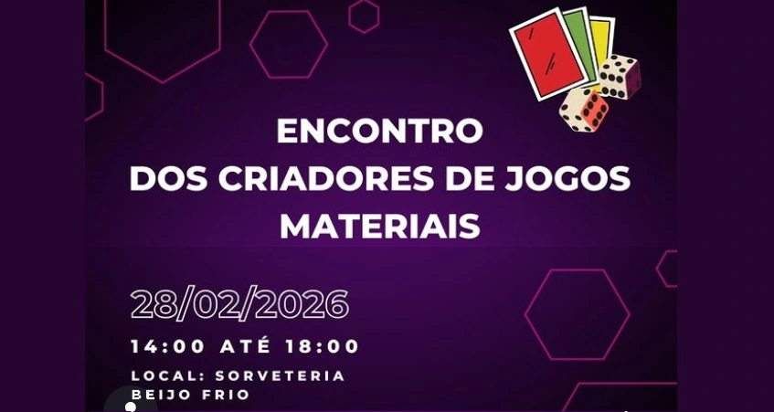 Os líderes do GJM_GO, Grupo dos Criadores de Jogos Materiais de Goiás, um dos braços da GAMEGO, Associação dos Criadores de Jogos de Goiás, realizam no próximo sábado o Sétimo Encontro dos Criadores de Jogos Materiais, em Goiânia, evento idealizado com o objetivo reunir e fortalecer a comunidade de criadores e testadores de jogos materiais, como board games e card games, na região.