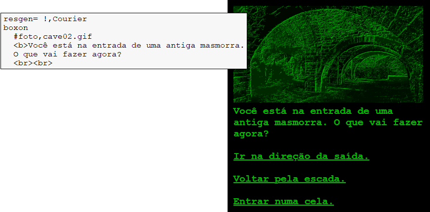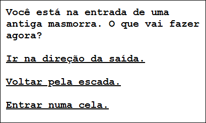 Esta é a estrutura básica das páginas (scripts) de uma aventura “contada” nas masmorras de um castelo. A pergunta aqui é: só existe esta forma de montar essa narrativa?