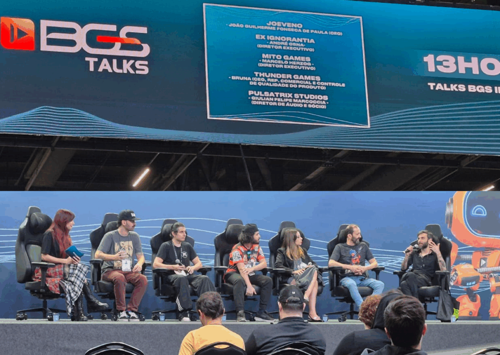 Bacana também foi ver uma boa parte dos devs indies, presentes como expositores, expondo suas experiências no palco BGS talks. Mesmo no tumulto de sons e na correria do tempo exíguo, dicas valiosíssimas foram distribuídas pelos palestrantes.