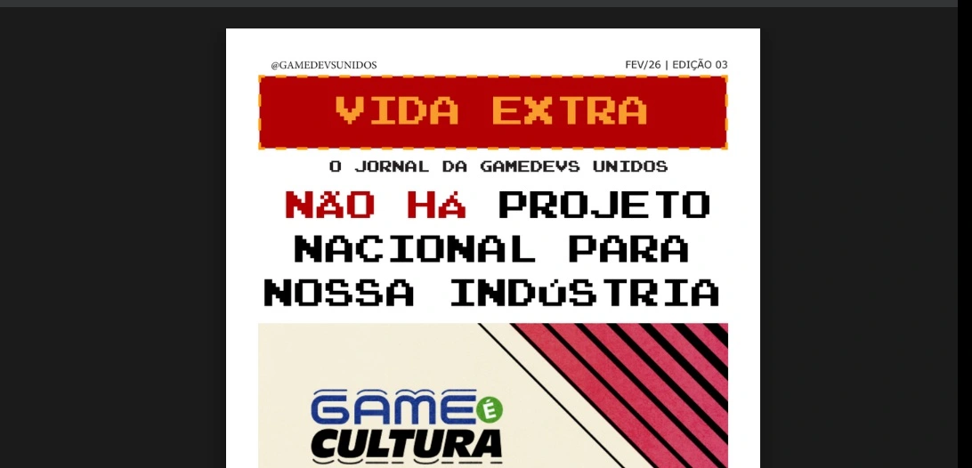 O GDU, coletivo Game Devs Unidos, acaba de anunciar o lançamento da mais recente edição do jornal online Vida Extra, seu periódico informativo voltado ao universo de desenvolvedores e profissionais de game design nacional.