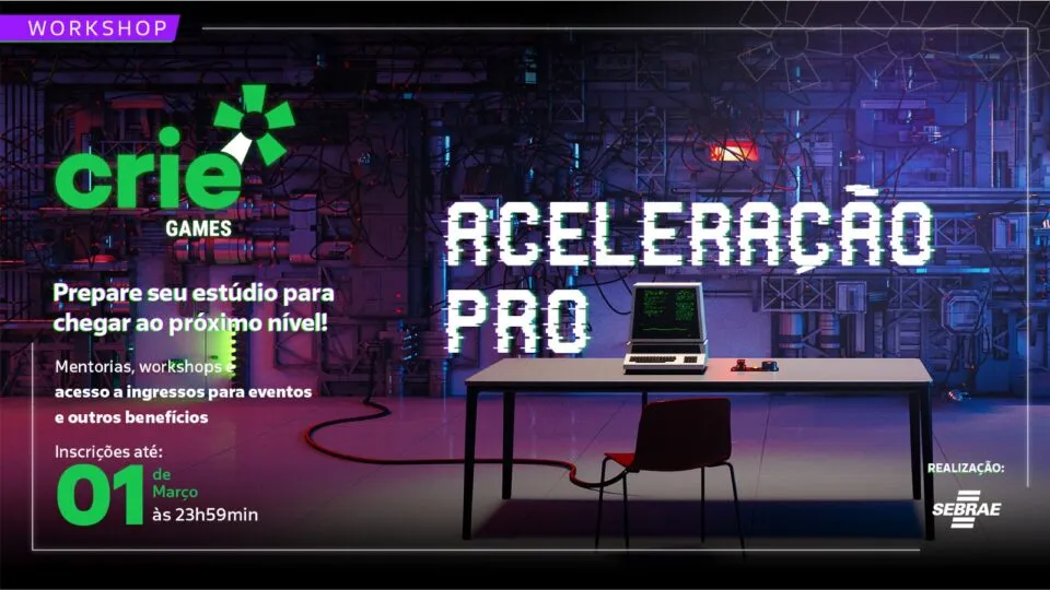 O Sebrae-SP abriu as inscrições para a Modo Aceleração Pro, uma jornada do programa Crie Games pensada para estúdios de jogos digitais já formalizados no estado de São Paulo e que estão em um momento de crescimento. A proposta é apoiar empresas que já passaram da fase inicial e agora precisam dar um próximo passo com mais organização, foco e preparo para oportunidades do setor.